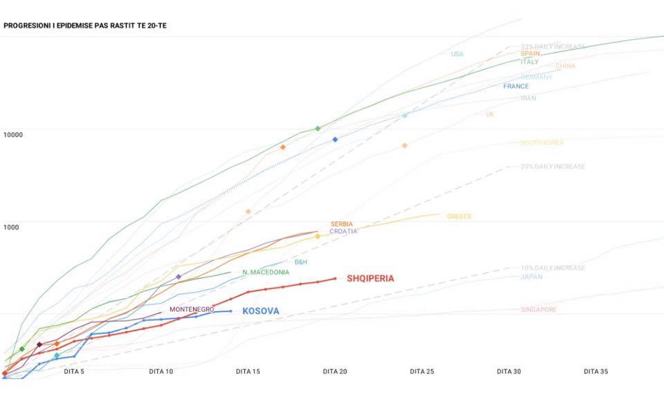 Rama ka publikuar kurbën e të prekurve nga koronavirusi i ri në Shqipëri.