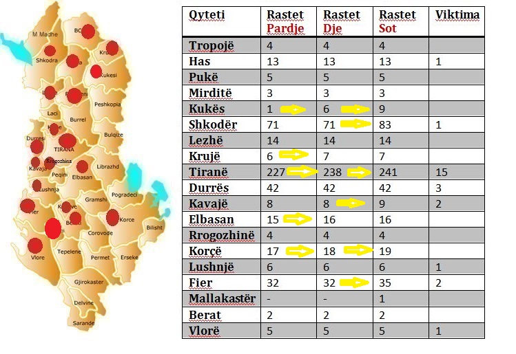Siç vihet re edhe në hartën e ilustruar më poshtë, hartës së qyteteve të prekura sot i është shtuar edhe Mallakastra. Përveç 1 rasti në Mallakastër, rastet e tjera të reja janë në Tiranë (3), Kukës (3), Fier (3), Kavajë (1), Shkodër (12) dhe Korçë (1).