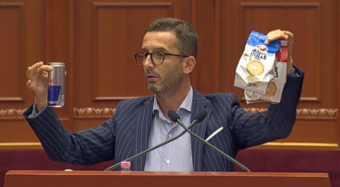 Për ta “ilustruar” këtë Braçe kishte marrë me vete një Red Bull dhe dy Bake Rolls duke thënë se kaq vlente koncesioni i tyre prej 260 milionë eurosh. Por ndryshe nga Ralf Gjoni sot, ai nuk u përjashtua.