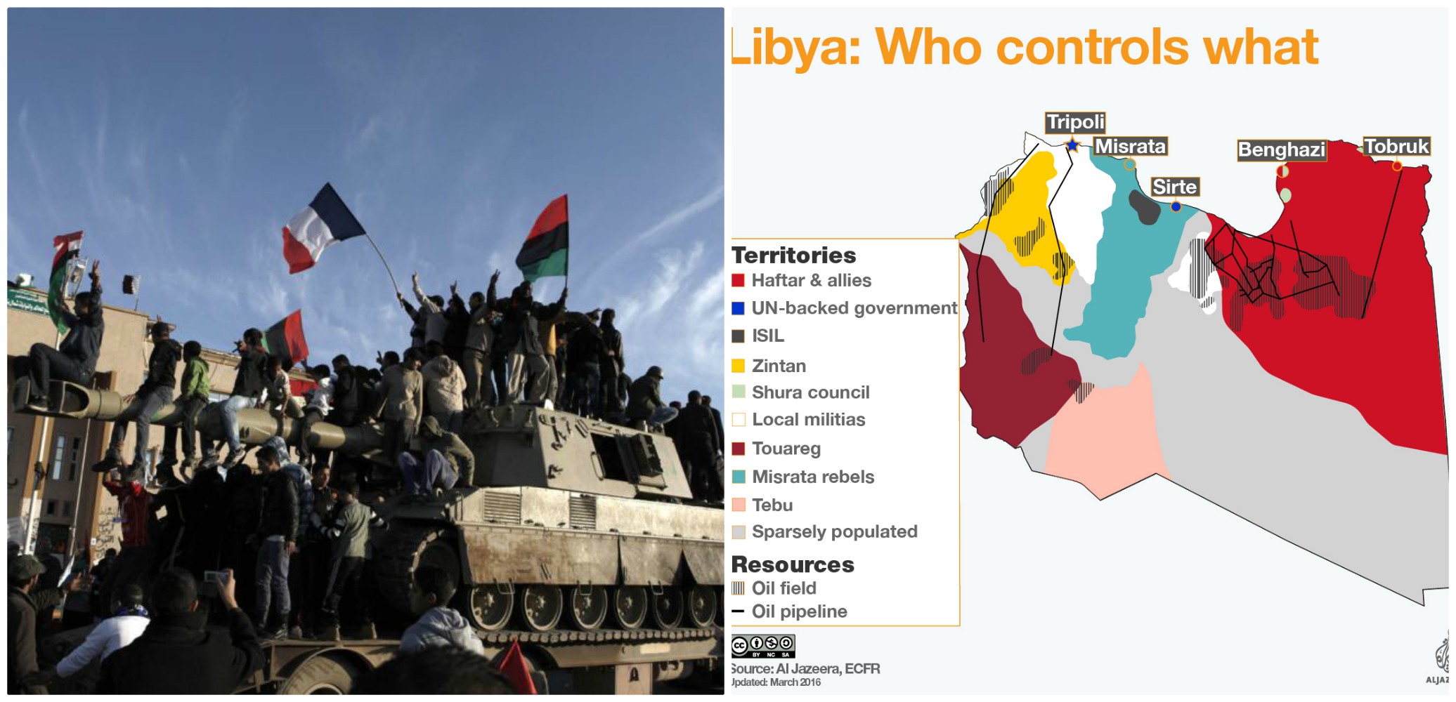 Dobësia e institucioneve shtetërore të Libisë ka lejuar që grupet e armatosura lokale të shfaqen dhe të lulëzojnë. Në disa zona, ato sigurojnë siguri dhe zbatim të ligjit që shteti nuk mundet. Sidoqoftë, grupe të fuqishme militante islamike si al-Kaeda, Ansar al-Sharia dhe Shteti i vetëshpallur Islamik veprojnë gjithashtu në të gjithë vendin.