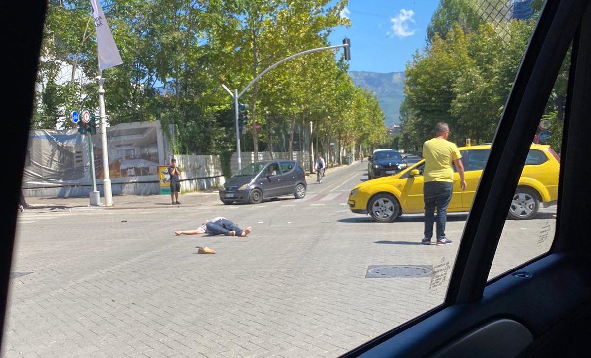 Siç duket nga fotot një person ka mbetur i shtrirë në rrugë ndërsa gjendja e tij nuk dihet ende.