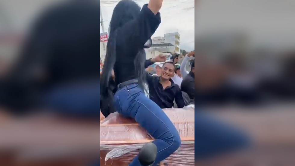 Ndërsa 38-vjeçari po bëhej gati për t’u çuar në varreza, një grua e re që besohet se ishte gruaja e tij u ngjit mbi arkivol dhe filloi të tundej duke dhënë një shfaqje të denjë për një klub nate.