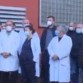 “Ne jemi mbledhur për të mbështetur kolegun tonë, i cili është larguar nga pun ape ka kërkuar kushte më të mira për trajtimin e të sëmurëve dhe kushte më të mira për trajtimin e personelit mjekësor. Kjo është fatkeqësi”– tha një nga mjekët.