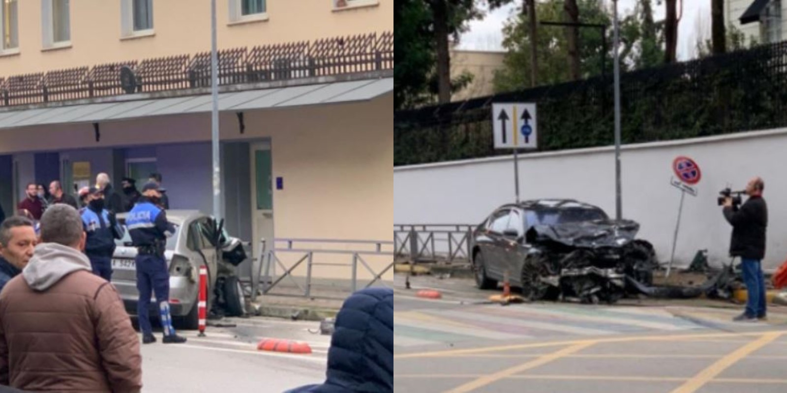 Dy mjete janë përplasur përballë godinës së Radio Televizonit Shqiptar e nga përplasja njëri nga mjetet e përfshira në aksident ka përfunduar në hyrjen e ambasadës italiane.