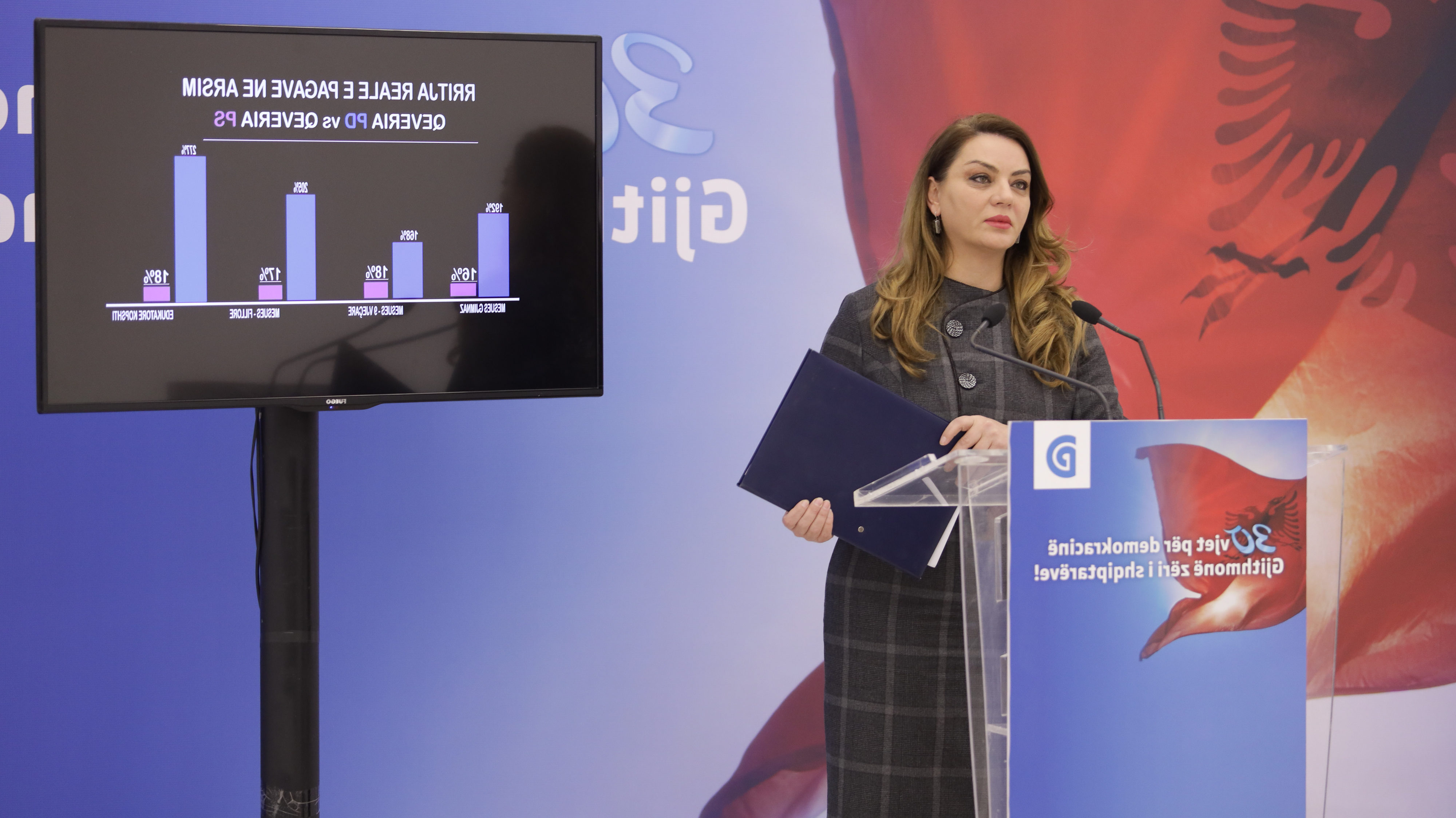 Më tej ajo tregoi një grafik duke thënë se në 8 vite kryeministri Rama ka dështuar edhe në arsim duke mos u krahasuar në asnjë drejtim me qeverisjen e 8 viteve më parë.