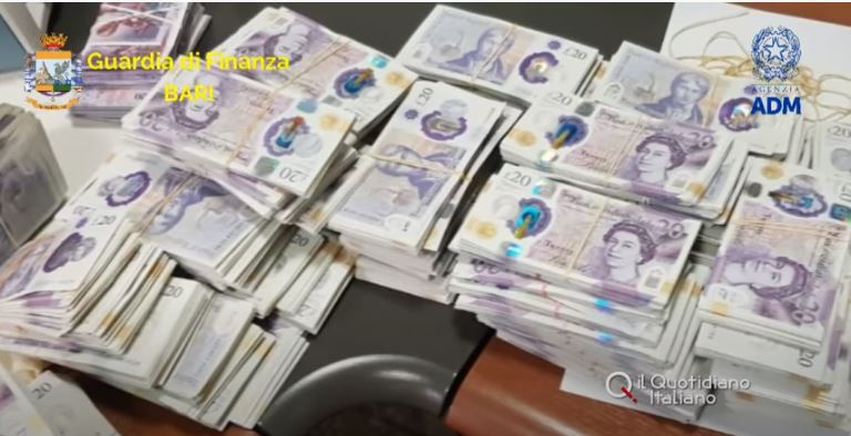 Sekuestrohen 225 000 stërlina në portin e Barit, të cilat kishin si destinacion Shqipërinë.