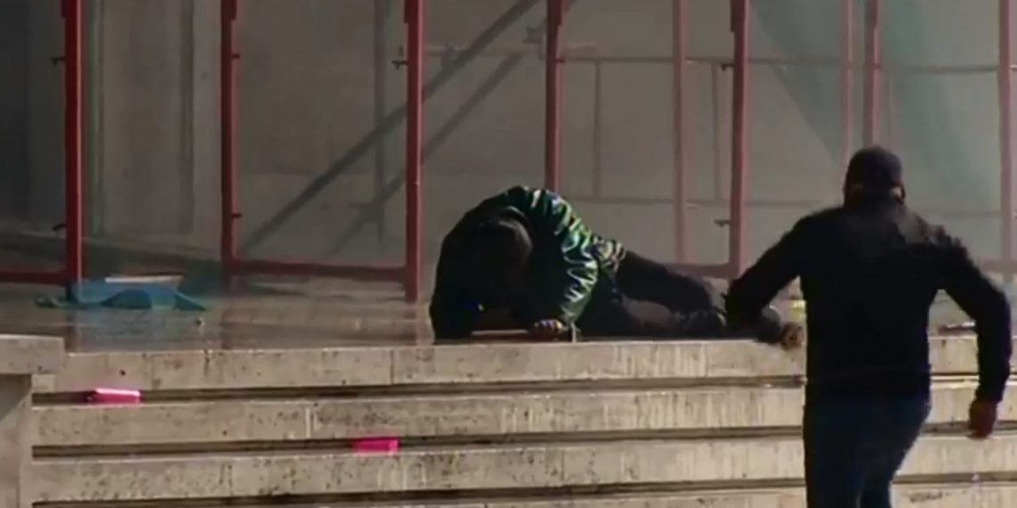 Pamjet e rënda tregojnë qitësin e veshur me të zeza e të maskuar duke dalë nga pas një autobusi dhe duke gjuajtur disa herë nga afër një person tjetër të veshur me xhinse dhe një kapuç të kuq. Në përpjekje për të shpëtuar, shënjstra përplaset me një grua që shoqërohej nga një vajzë e mitur, përplasje që mesa duket i shpëtoi jetën.