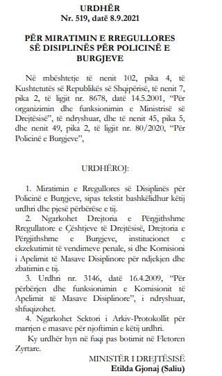 Sipas vendimit të Ministrisë së Drejtësisë, që mban firmën e ish-ministres Etilda Gjonaj, do të ketë një sërë kufizimesh për punonjësit e burgjeve, duke nisur që nga mospërfshirja në politikë apo qënia pjesë e ndonjë partie.