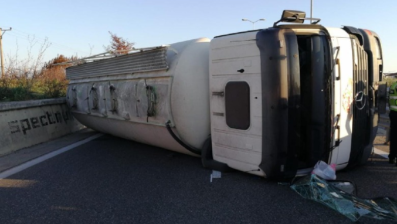 Një aksident ka ndodhur në aksin Kavajë-Durrës ku një trajler është përmbysur.