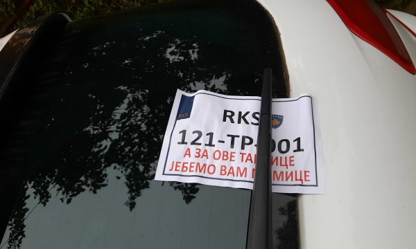 Në veri të Kosovës kanë raportuar se gjatë natës së mbrëmshme në të paktën një veturë me tabela të përkohshme të Kosovës, janë vendosur mbishkrime me përmbajtje kërcënuese.