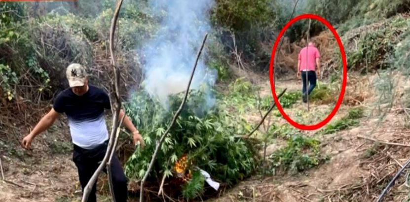 Në video shihet parcela me bimë narkotike, të cilat janë asgjësuar me anë të djegies.