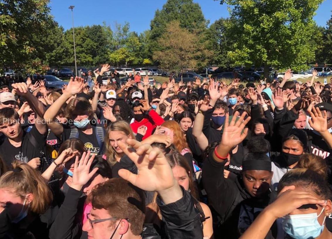 Një numër sharjesh racore u shfaqën papritur në muret e banjës në dy shkolla në Missouri në fillim të shtatorit, duke çuar në një protestë të madhe nga studentët.