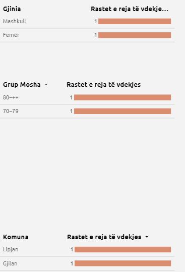 Sakaq, mësohet se një nga viktimat është një grua e moshës 70-79 vjeçare nga Gjilani. Ndërsa, viktima tjetër është një burrë mbi 80-vjeç nga Lipjani.