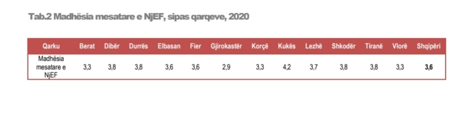 Në vitin 2020, numri mesatar i anëtarëve të NjEF është 3,6. Qarku me numrin më të madh të anëtarëve të NjEF është Kukësi me 4,2 anëtarë, ndërsa Gjirokastra është qarku me numrin më të vogël të anëtarëve në përbërjen e NjEF, me 2,9 anëtarë.