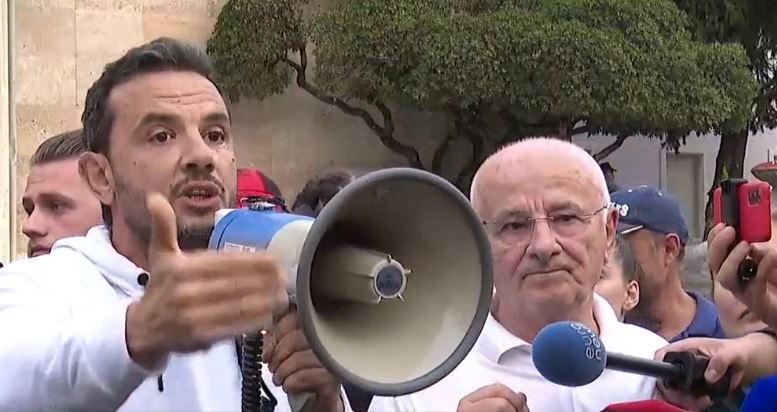 “Nuk duam t’i japim ngjyrime politike protestës. Ju lutem partitë larg, partitë larg.”- tha një prej protestuesve.