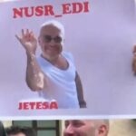 Aktori i humorit Florian Binaj është paraqitur në protestë me një pankartë në të cilën shkruhej “Faleminderit Nusr_Edi”, duke i kujtuar kryeministrit Edi Rama darkën e famshme të ministrave dhe zyrtarëve të tjerë të lartë të qeverisë.