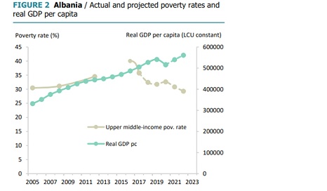 Shqipëria po përjeton rritjen më të lartë ekonomike në Rajon, por në të njëjtën kohë vendi ka një të tretën e popullsisë që jeton në varfëri relative me më pak se 5 dollarë në ditë.