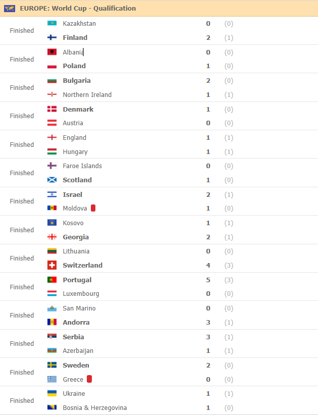 Me rifillimin e sfidës nuk pati ndryshim rezultati duke bërë që Polonia të marrë 3 pikë të cilat e dërgojnë në vendin e dytë në Grupin I.