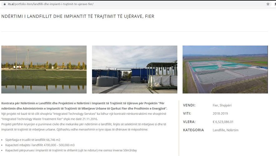 Në faqen e ITS thuhet se bëhet fjalë për “Një projekt në bazë të të cilit shoqëria “Integrated Technology Services” ka lidhur një kontratë nënkontraktimi me shoqërinë “Integrated Technology Waste Treatment Fier” shpk me datë 21.11.2016.”.