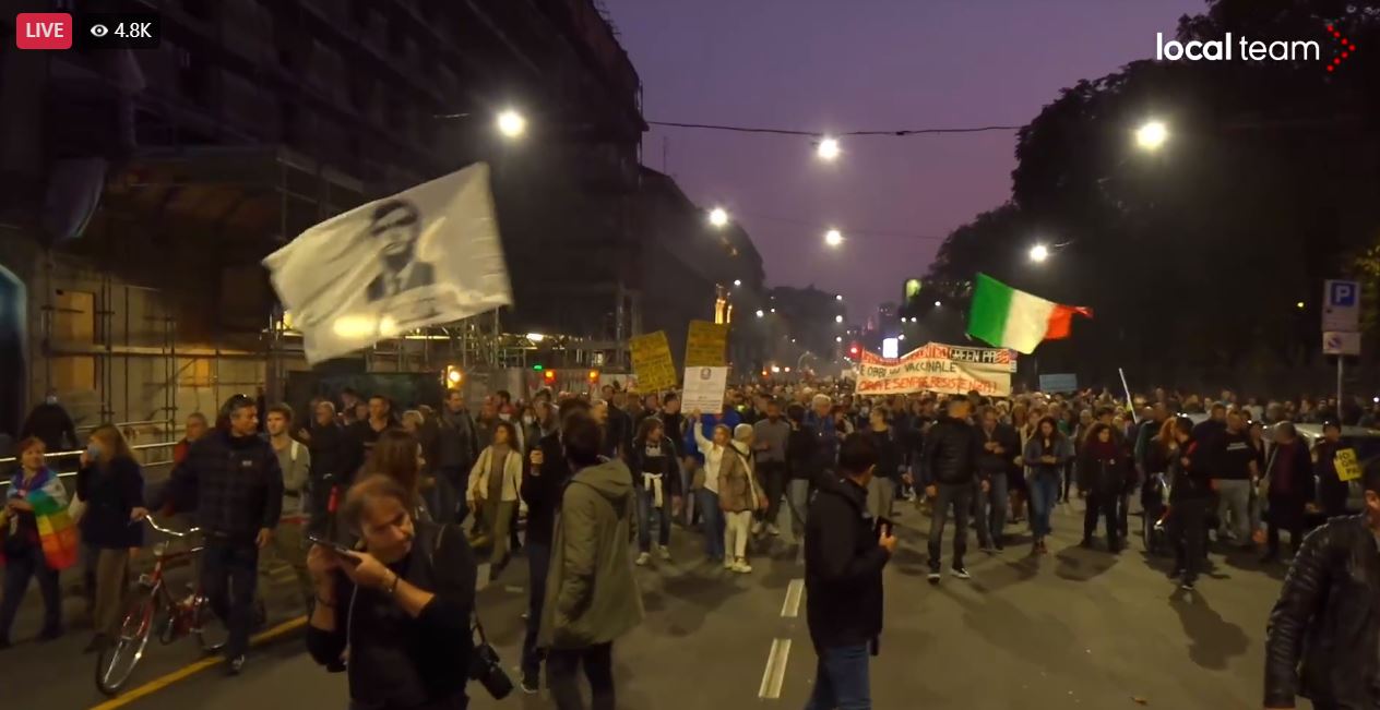 Ata kanë marshuar në rrugët e dy qyteteve kryesore italiane për të kundërshtuar vendimin e qeverisë për pasaportat e vaksinimit në vendet e punës e vendet e argëtimit.