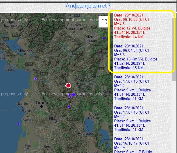 Lëkundje sizmike janë ndjerë mëngjesin e sotëm në vend. Bëhet fjalë për dy tërmete, që sipas IGJEUM i pari është regjistruar me magnitudë 3.3 të shkallës rihter, ndërsa epiqendra është 15 kilomentra në verilindje të Bulqizës. Thellësia e këtij tërmeti është 15 kilometra.