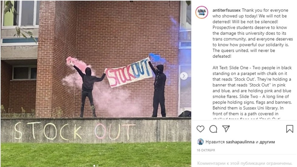Një grup në internet që e quan veten Anti Terf Sussex e përshkroi Stock si “një nga transfobet më të shquara të këtij ishulli të mjerë, që përkrah një variacion bastard të feminizmit radikal”. Aktivistët trans përdorin termin “terf” për të përshkruar këdo që ata e konsiderojnë si “feminist radikal trans-përjashtues”.
