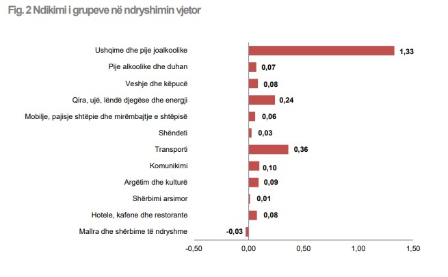 Ndikimi i grupeve kryesore në ndryshimin vjetor të indeksit të çmimeve të konsumit.