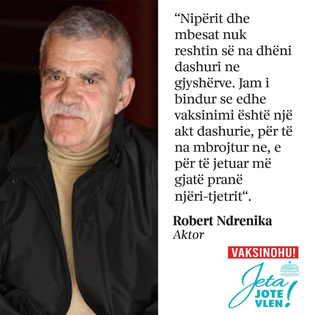Kryeministri Rama u ka bërë thirrje qytetarëve të vaksinohen duke publikuar mesazhin e aktorit të njohur shqiptar, Robert Ndrenika.