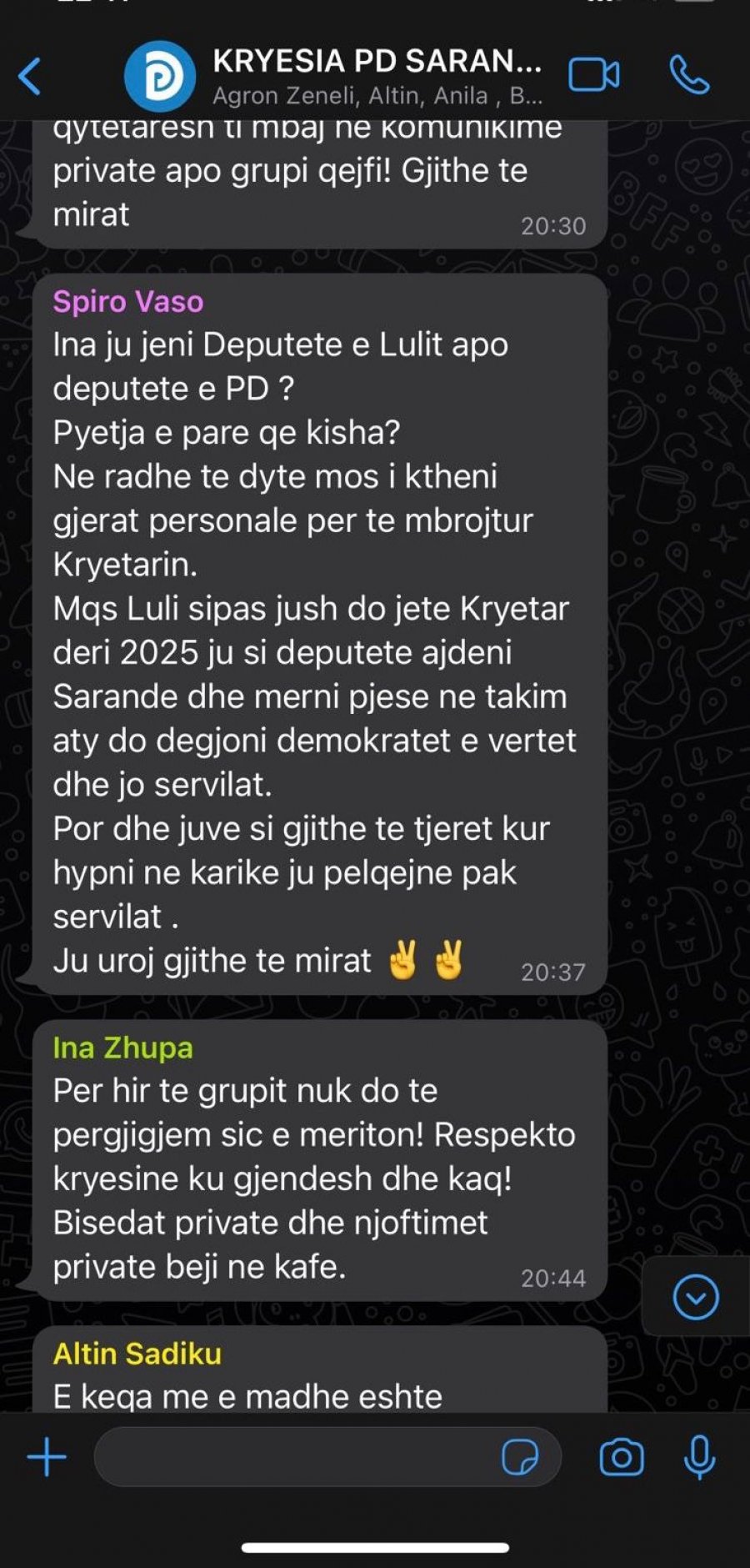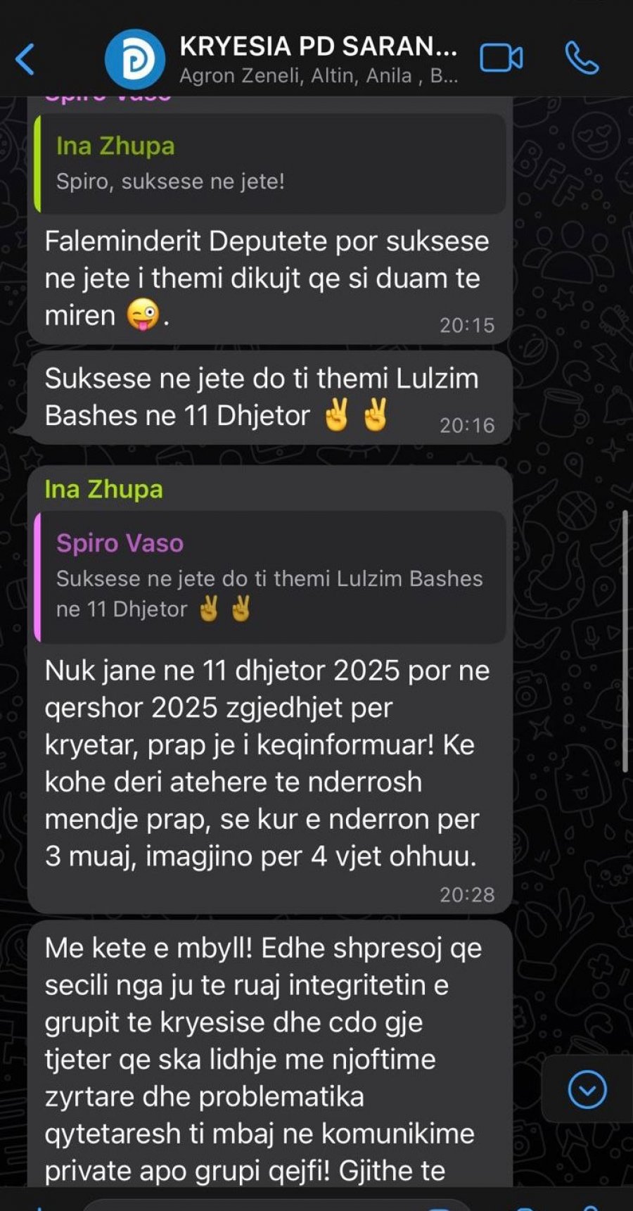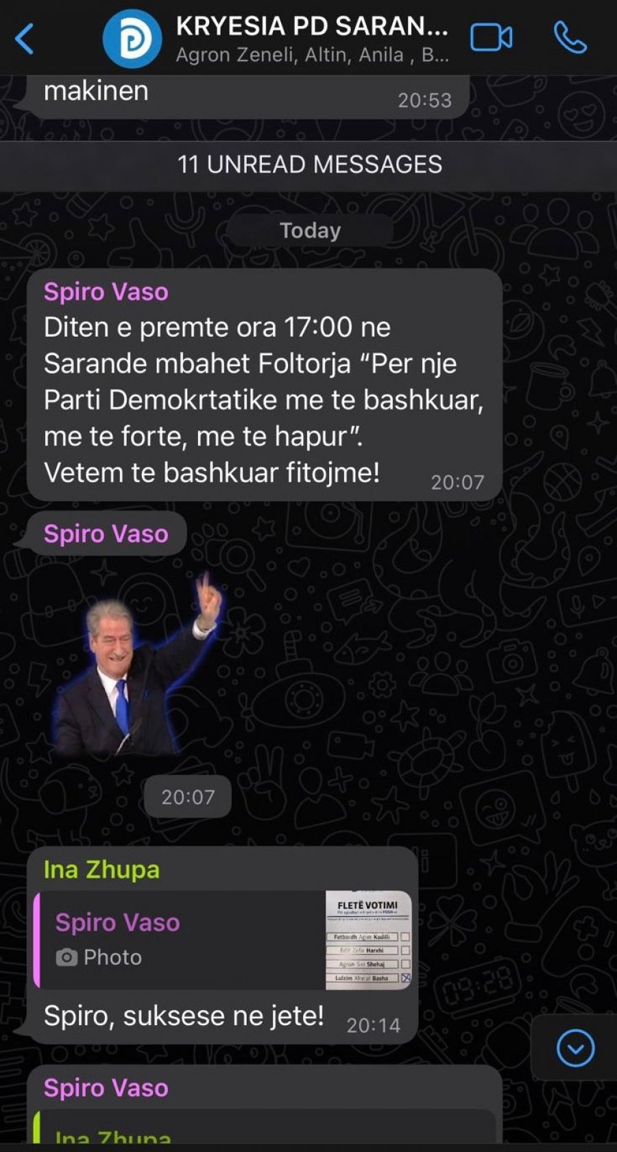 Ndërsa Vaso bën njoftimin për foltoren e Berishës duke ftuar anëtarët e grupit për pjesëmarrje, Zhupa i shkruan: “Suksese në jetë!”