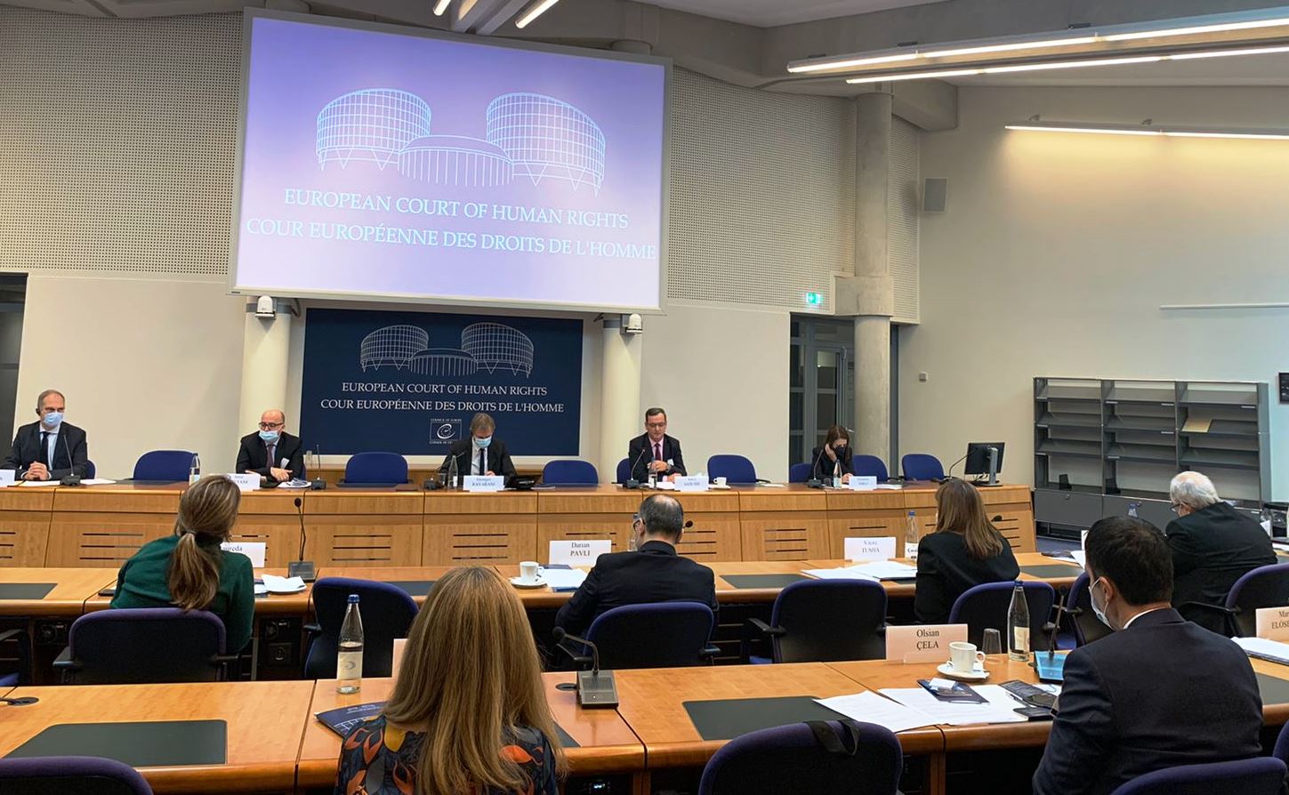 Në këtë bashkëbisedim mjaft të frytshëm midis delegacioneve, morën pjesë edhe gjyqtarët e Gjykatës Evropiane për të Drejtat e Njeriut, z.Georges Ravarani, kryetar seksioni, gjyqtar i zgjedhur për Luksemburgun, z.Georgios Serghides, zëvendëskryetar seksioni, gjyqtar i zgjedhur për Qipron, z. Dmitry Dedov, gjyqtar i zgjedhur për Federatën Ruse, znj. María Elósegui, gjyqtare e zgjedhur për Spanjën, z. Darian Pavli, gjyqtar i zgjedhur për Shqipërinë, znj. Anja Seibert-Fohr, gjyqtare e zgjedhur për Gjermaninë, z. Peeter Roosma, gjyqtar i zgjedhur për Estoninë, z. Andreas Zünd, gjyqtar i zgjedhur për Zvicrën dhe z. Frédéric Krenc, gjyqtar i zgjedhur për Belgjikën.