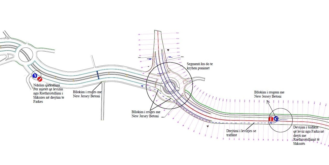 Në sajë të vazhdimësisë së punimeve në Unazën Lindore, duke filluar që nesër datë 13.11.2021 është i nevojshëm bllokimi i kalimit nga rrethi i Shkozës në drejtim të Farkës për një afat prej 14 ditësh.