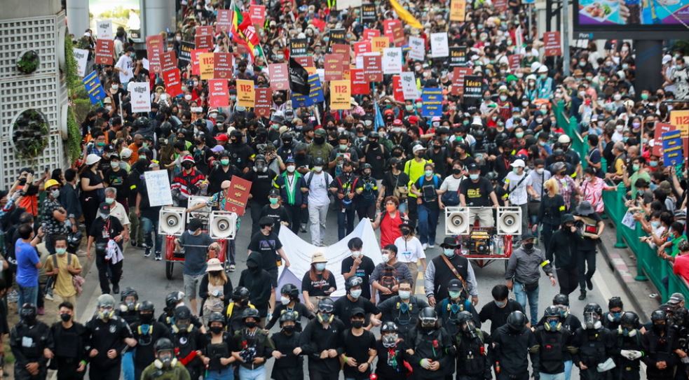 Njerëzit morën pjesë në marshimin masiv për të protestuar atë që ata e përshkruan si një kthim në monarkinë absolute nën Mbretin Maha Vajiralongkorn.