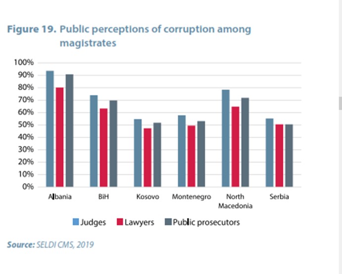 Në Shqipëri është perceptimi më i lartë publik se gjykatësit, juristët dhe prokurorët publikë janë të korruptuar.