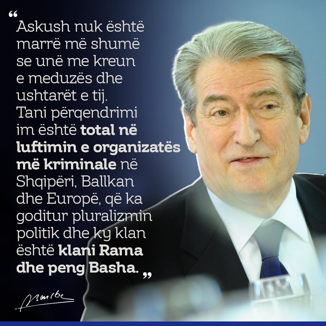 Më pas, Berisha ka publikuar edhe një mesazh në kartolinë për ndjekësit e tij ku shprehet se përqendrimi i tij është luftimi i asaj që e quan “organizatën më kriminale në Shqipëri, Ballkan edhe Europë”, që sipas tij është klani “Rama-Basha”.