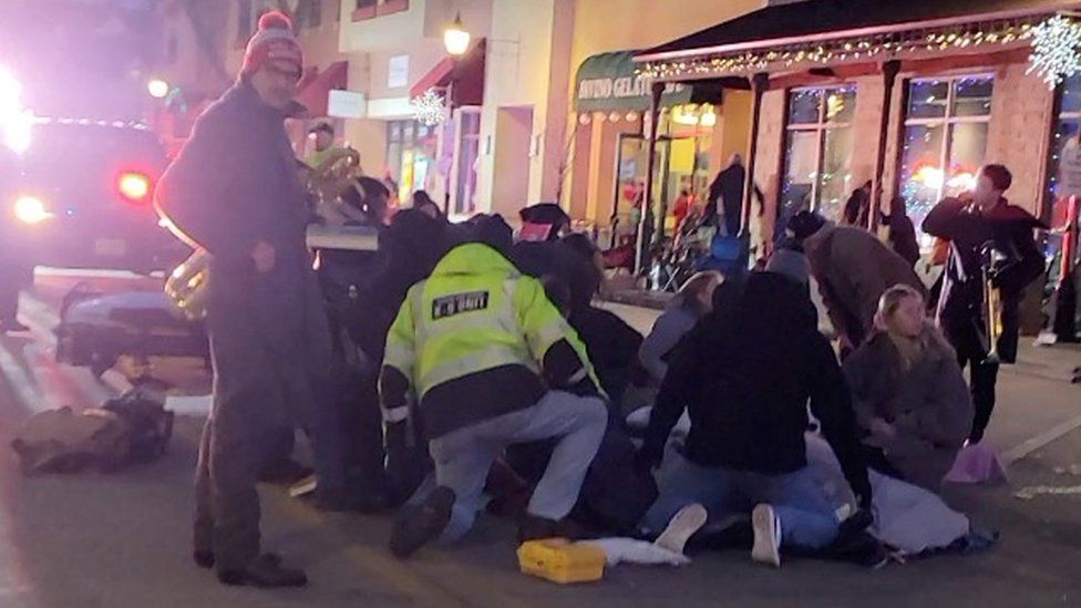 Bandat e shkollës dhe një trupë vallëzimi me gjyshe ishin mes atyre që marshonin nëpër qytetin e Ëaukesha kur një automjet erdhi me shpejtësi në rrugë.