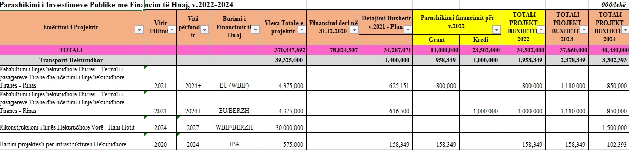 Ministria e Financave përllogariti një kosto prej 30 miliardë lekësh rreth 243 milionë euro për përfundimin e plotë të projektit që programohet të zhvillohet dhe të përfundojë përgjatë periudhës 2014-2027 (shih tabelën bashkëngjitur).