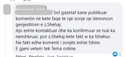 Mirëpo një zonjë, anëtare e degës nr.5 në Tiranë i shkruan Shehajt një koment ku shprehet se është e vërtetë që Shehaj e ka telefonuar, por ai ka gënjyer për përgjigjen e saj.