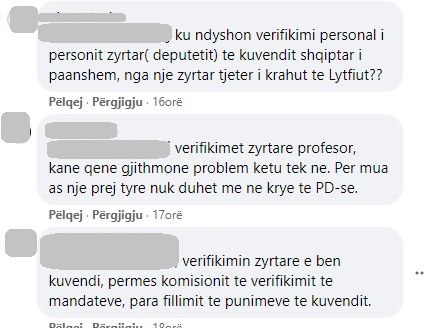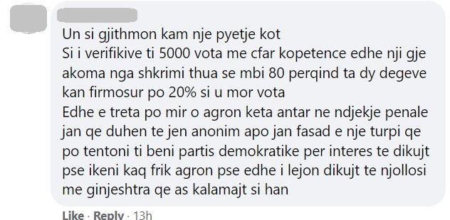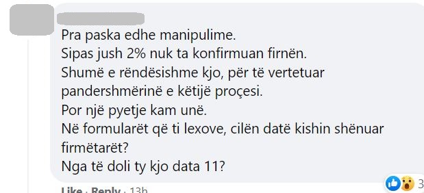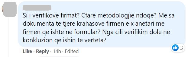 Mirëpo zonja nuk është e vetmja e cila po ankohet për procesin e verifikimit të firmave, pasi të shumtë janë ata që janë ankuar, mirëpo jo të gjitha komentet e tyre shfaqen në postimin e deputetit demokrat. Për pak orë, as postimi i zonjës nuk shfaqej, por pas shumë ankesash nga komentuesit u bë përsëri i aksesueshëm.