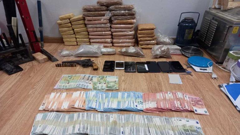 Veç drogës, policia ka sekuestruar 1 pistoletë me 11 fishekë, mbi 13 mijë euro, 2 automjete, 1 furgon, 2 peshore, 7 celularë, pajisje si prerëse etj.