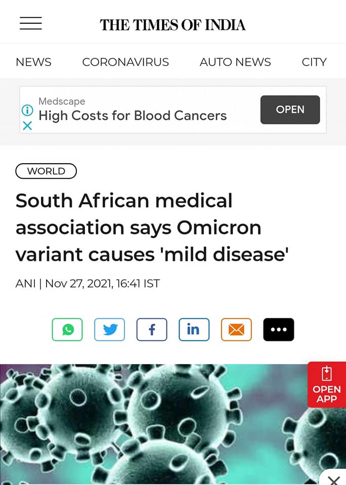 Më pas në një postim të dytë, ai ngre pyetjen se mund të jetë bërë shumë zhurmë për asgjë, duke iu referuar deklaratës së Shoqatës Mjekësore të Afrikës së Jugut ku është identifikuar ky variant për herë të parë, se deri tani “Omicron” ka shkaktuar vetëm simptoma të lehta. Ai thekson se viruset evoluojnë drejt transmetueshmërisë më të lartë por dhe rrezikshmërisë më të ulët.
