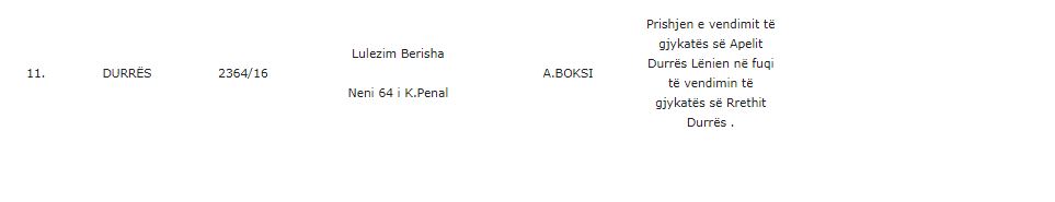 Kujtojmë se më 16 korrik 2014, Gjykata e Lartë e rrëzoi vendimin për burgim të përjetshëm, duke e dënuar Lul Berishën përfundimisht me 25 vjet burg.