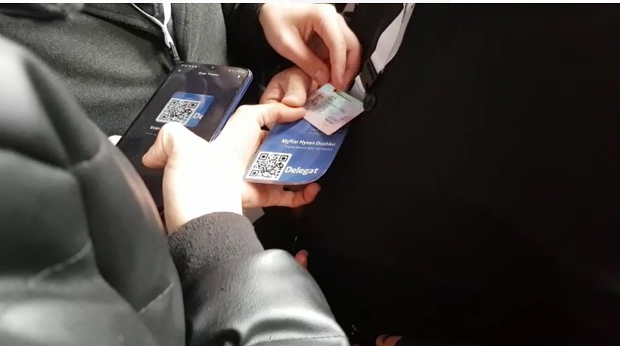 Delegatët identifikoheshin nëpërmjet një barkodi unik dhe skanoheshin elektronikisht kartat e tyre të delegatit duke paraqitur edhe dokumentet e identifikimit.