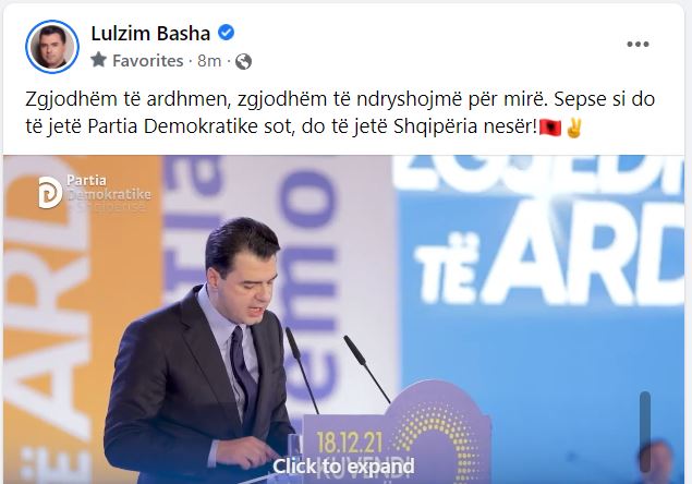 Pak më pas, Basha ka shkëputur një pjesë nga fjala e tij në Kuvendin e 18 dhjetorit. Mesazhi thekson se PD-ja do zgjedhë të ardhmen, se do ndryshojë për mirë dhe se do jetë në krah të shqiptarëve.