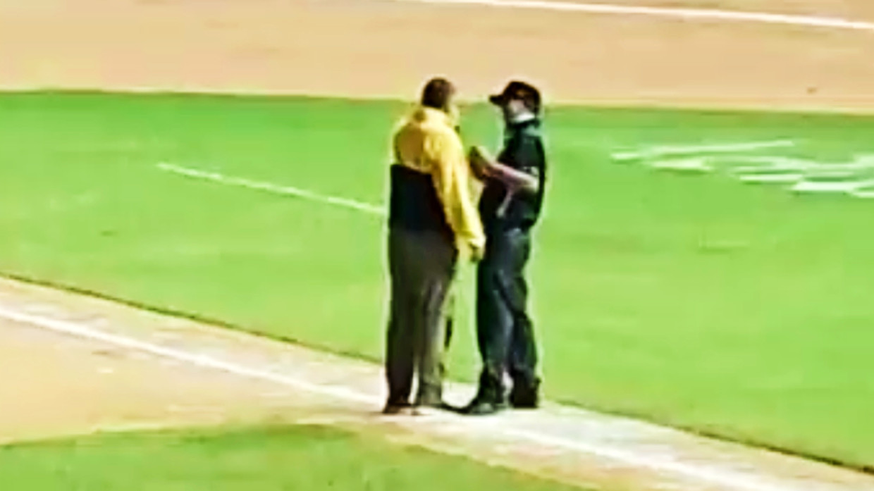 Disa persona ndihmuan në largimin e Sainz nga fusha e lojës, me pamjet nga një kënd tjetër që duket se e tregonte atë duke ngritur gishtin drejt tifozëve ndërsa gjykonte pranë lojtarëve.
