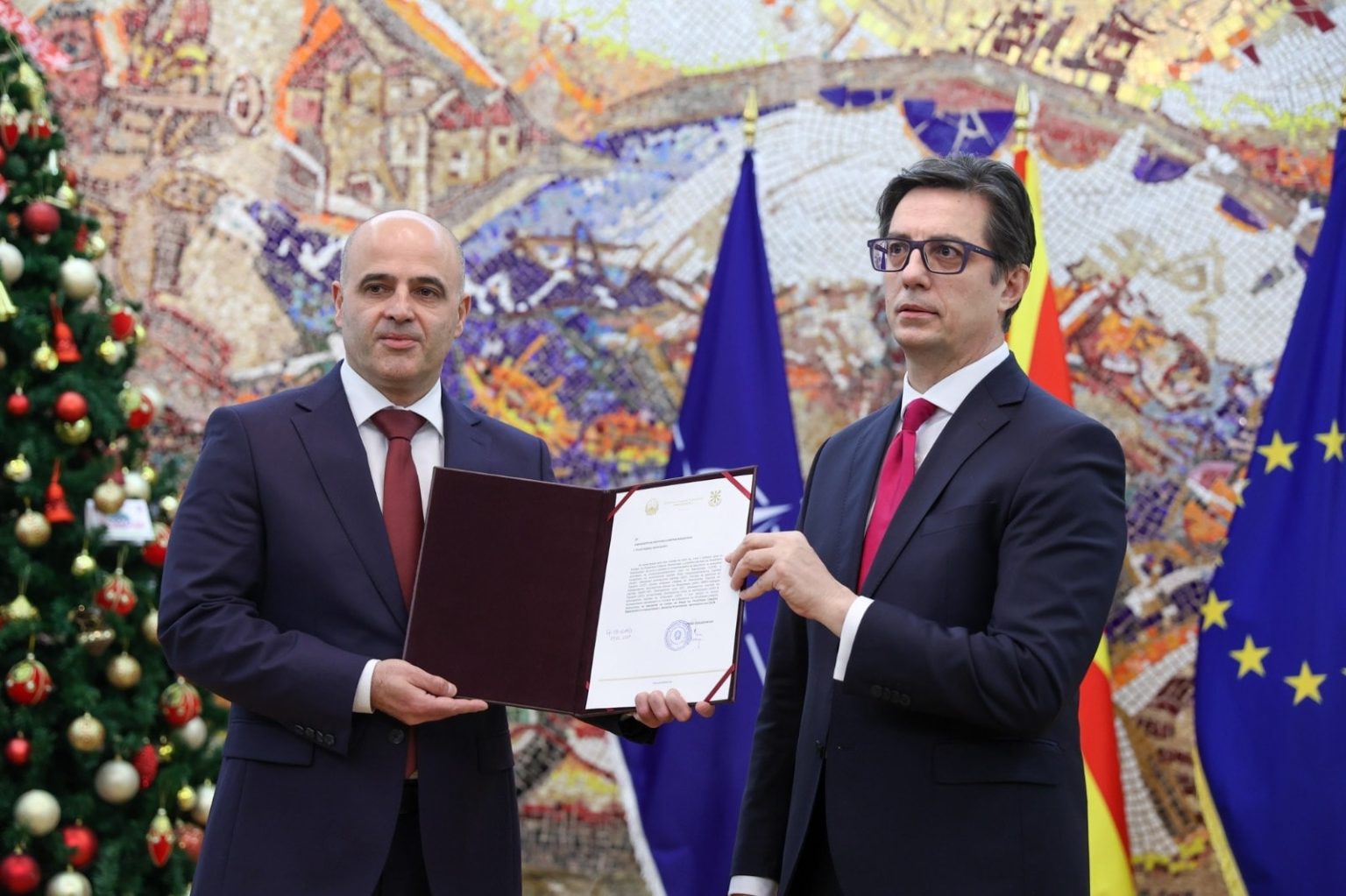 Presidenti Stevo Pendarovski i dorëzoi sot mandatin për krijimin e qeverisë së re liderit të LSDM-së, Dimitar Kovaçevski.