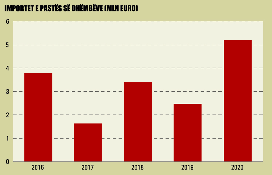 Sipas të dhënave të Doganave, importi i pastave të dhëmbëve në Shqipëri ka arritur vlerën e 5.2 milionë dollarëve në 2020, me një rritje prej 52% krahasuar me një vit më parë. Një metodologji krahasimi mes dy produkteve nuk arrihet vetëm nga leximi i shifrave, duke qenë se pastat e dhëmbëve janë produkte shumë herë më të shtrenjta se sa çamçakëzët. Megjithatë, ekspertë të shëndetit oral thonë se shqiptarët njihen për ‘maninë’ e tyre për të zëvendësuar larjen e dhëmbëve me konsumimin e çamçakëzëve.