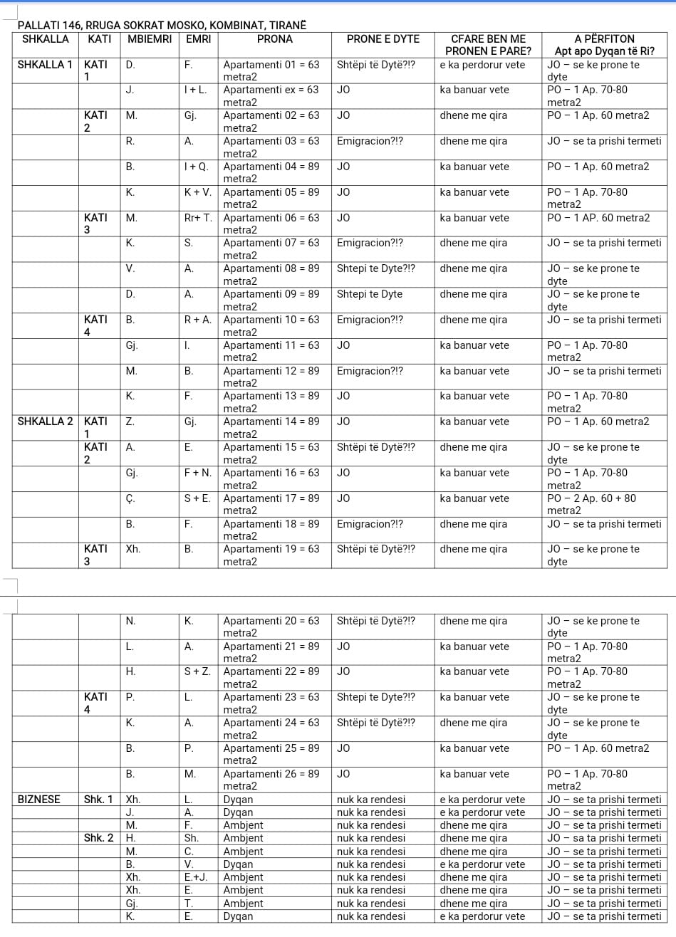 Pallati 146, në total ka 37 Pronarë, që kanë në pronësi afërsisht 2500 m2: