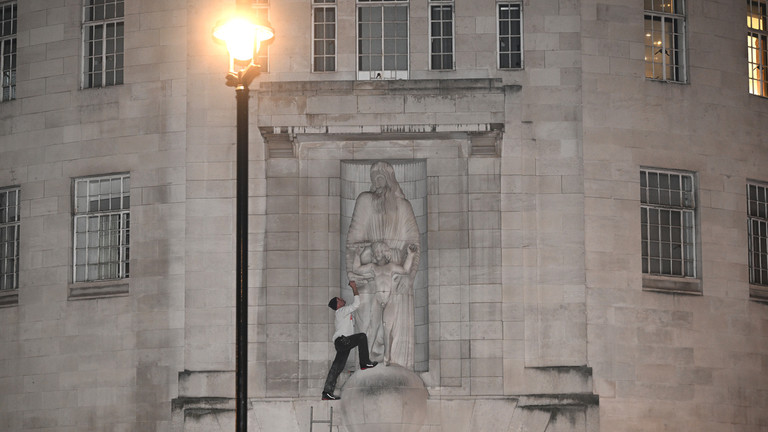 Një skulpturë e artistit britanik Eric Gill e vendosur në fasadën e BBC-së është sulmuar nga një burrë me çekiç. Përtej artit të tij, Gill u bë famëkeq pas vdekjes për abuzimin seksual të fëmijëve dhe qenit të tij.