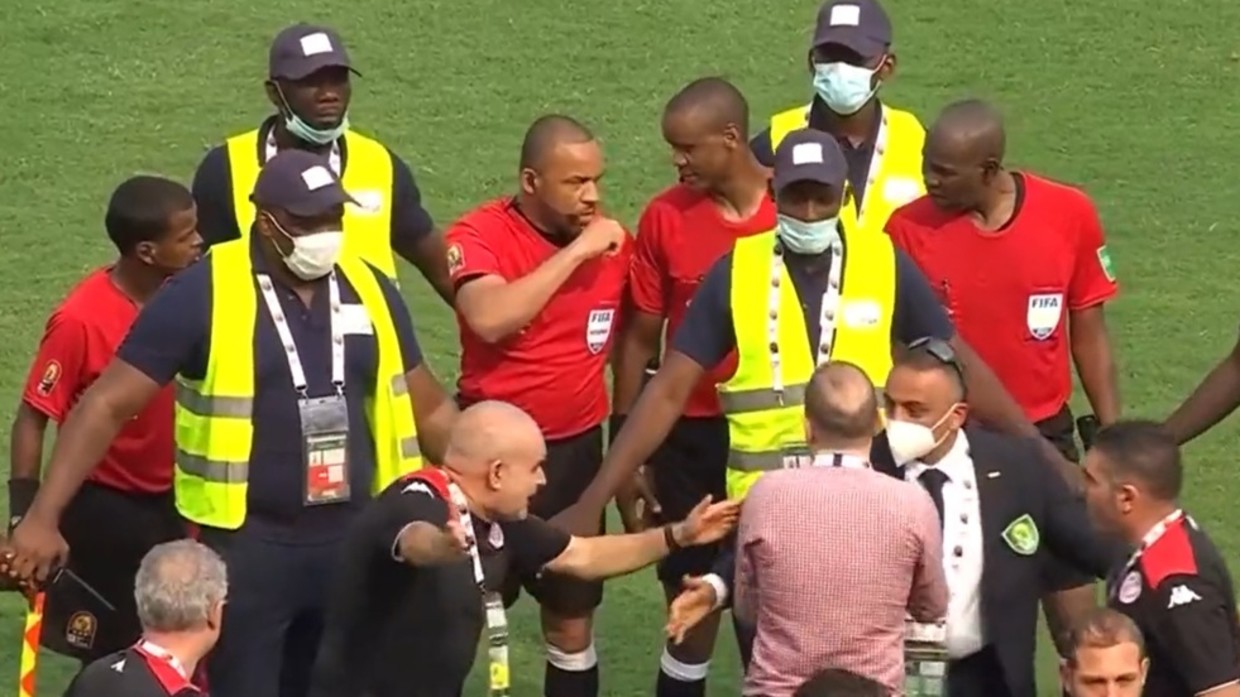 Edhe një herë, në minutën e 89 minuta, ai e mbylli ndeshjen para kohe duke çuar në reagiin e ashpër të trajnerit të Tunizisë e stolit të cilët u futën në fushë.
