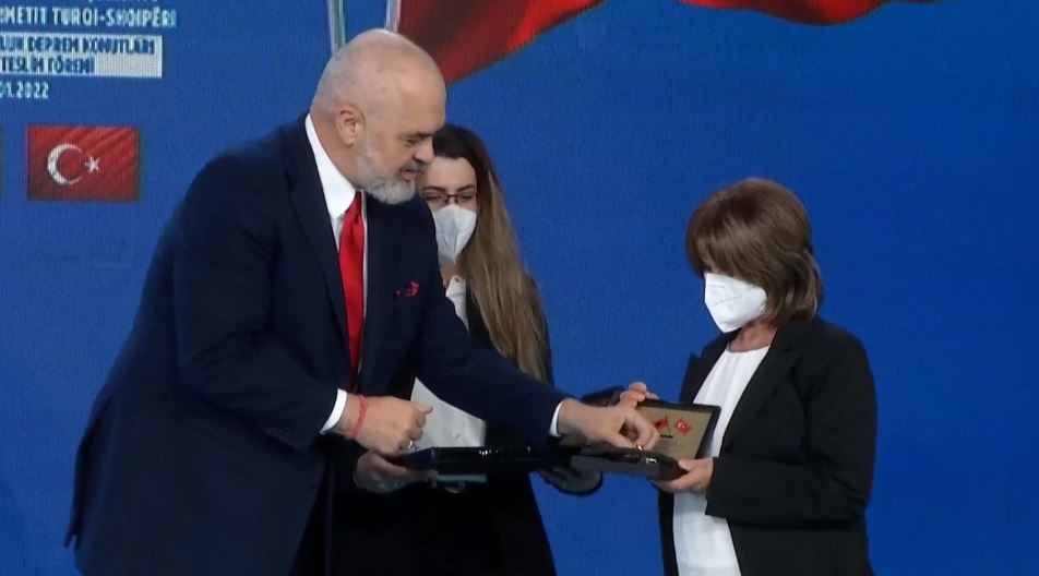 “Kujtoj dy vite më parë, kur ishim të pa shpresë, pa ëndrra, nuk kishim shpresë po i drejtoheshim Zotit, qiellit, dhe pikërisht në këto momente kryeministri ynë i nderuar Z.Edi Rama, na dha forcë sepse Edi Rama kishte mikun presidentin e Turqisë. Zoti president, shqiptari di ta vlerësojë të mirën dhe gjithmonë populli shqiptar nuk e harron këtë.